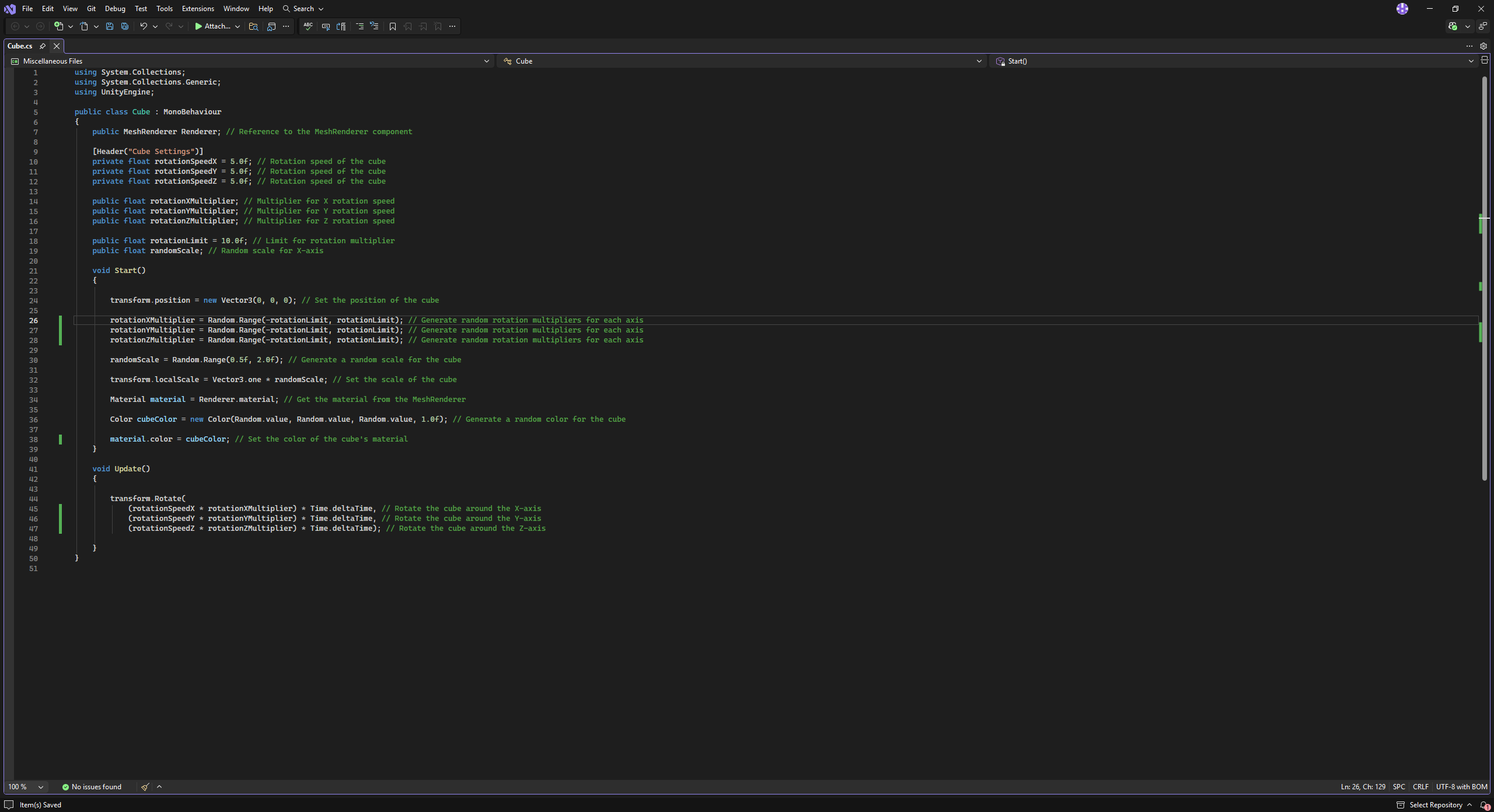 The idea was to randomize aspects of a cube so it would e different each time it runs.